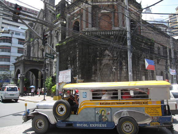 Rustic WWII Jeeps are the most affordable and entertaining transportation system in Manila. The drivers hurl through traffic with jerks and stops, pretending there are no passengers in the back. The greatest part of the adventure is that when sitting in a Jeepney crammed with people, it is impossible to look out the window and determine where you are or where you are going.