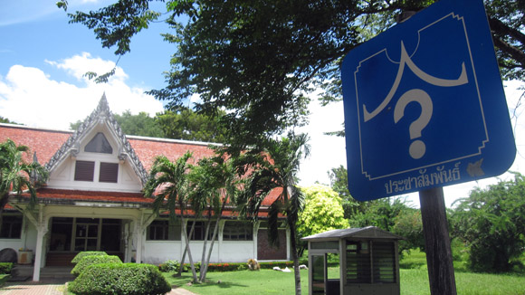 Apparently at Buddhamonthon, if you don’t know the name of a temple or house, simply put up a sign with a little roof over a giant question mark!