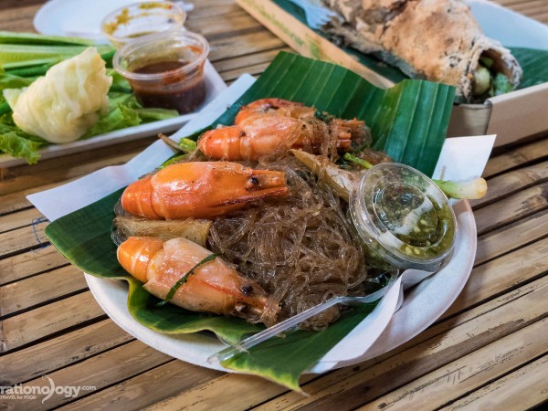 A few strides away, we stumbled into Boston Sausages, a stall selling sausages on a stick, among other things, like burgers. Similar to eating Thai sai krok (video), the sausage was served on a skewer stick and piping hot.
