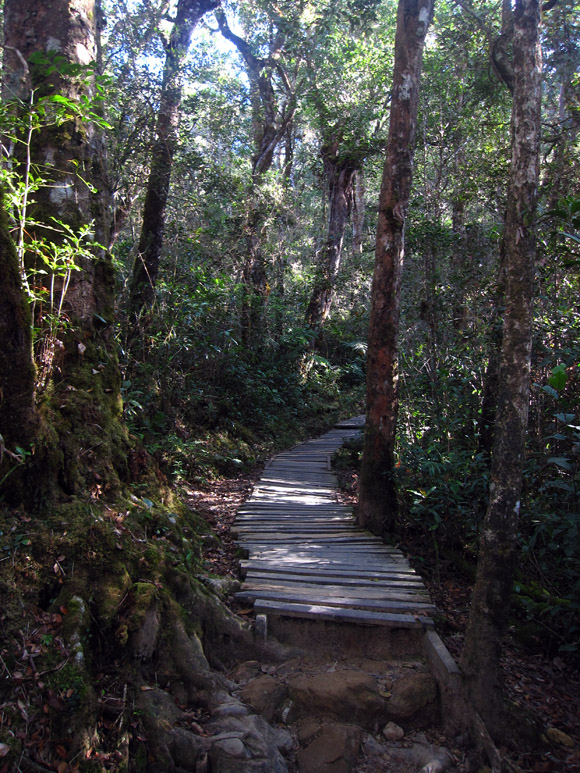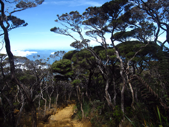 The environment drastically changes from tropical rain forest to altitude high shrubbery and stunted vegetation.