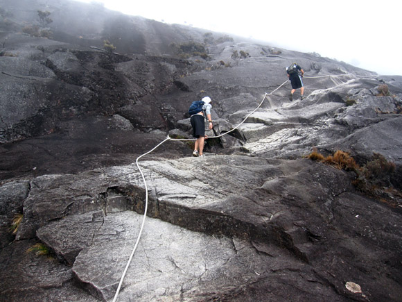 Approaching the top you will begin to trek on solid rock surfaces with thick rope railings. The ropes are mostly for stability as the climbing is not technical, but be careful along these stretches.