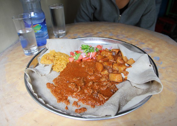 The beef is freshly ground and then mixed with mitmita, a blend of chili, spices, and salt. Then comes a generous anointing of spiced Ethiopian butter known as niter kibbeh.