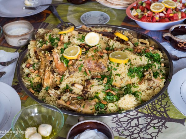 Maqluba – Literally translated to upside-down, maqluba is a dish that includes chicken and spices on the bottom of a pot, cooked with rice on the top. Once the dish is fully cooked, it’s flipped over onto a tray, so the rice goes to the bottom and the meat or chicken remains on top.